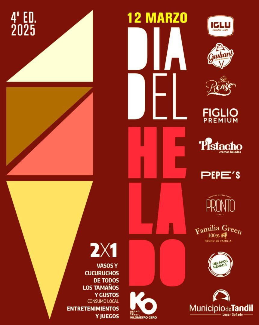 En el marco del fomento de las actividades de Kilómetro 0, Tandil tendrá el próximo 12 de marzo la edición del “Día del Helado 2025”, en el que distintas heladerías de la ciudad ofrecerán promociones y descuentos, en una jornada con entretenimientos.