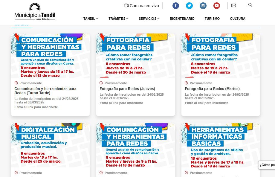 La inscripción se realiza desde la página web del Municipio de Tandil (www.tandil.gov.ar/escuela-