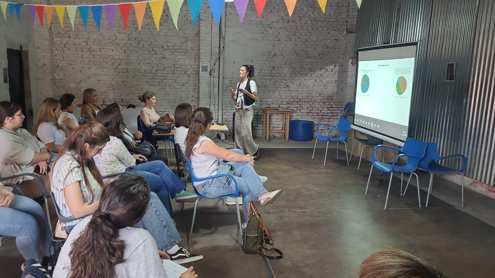 • Panel de Género: Intercambio de Experiencias en Extensión, donde la Facultad, a través de la Lic. Isabela Ibarra, presentó el proyecto “Ellas Hacen” y compartió avances del trabajo realizado junto a mujeres emprendedoras de Movediza y Gardey, en articulación con el Programa de Género de la UNICEN.